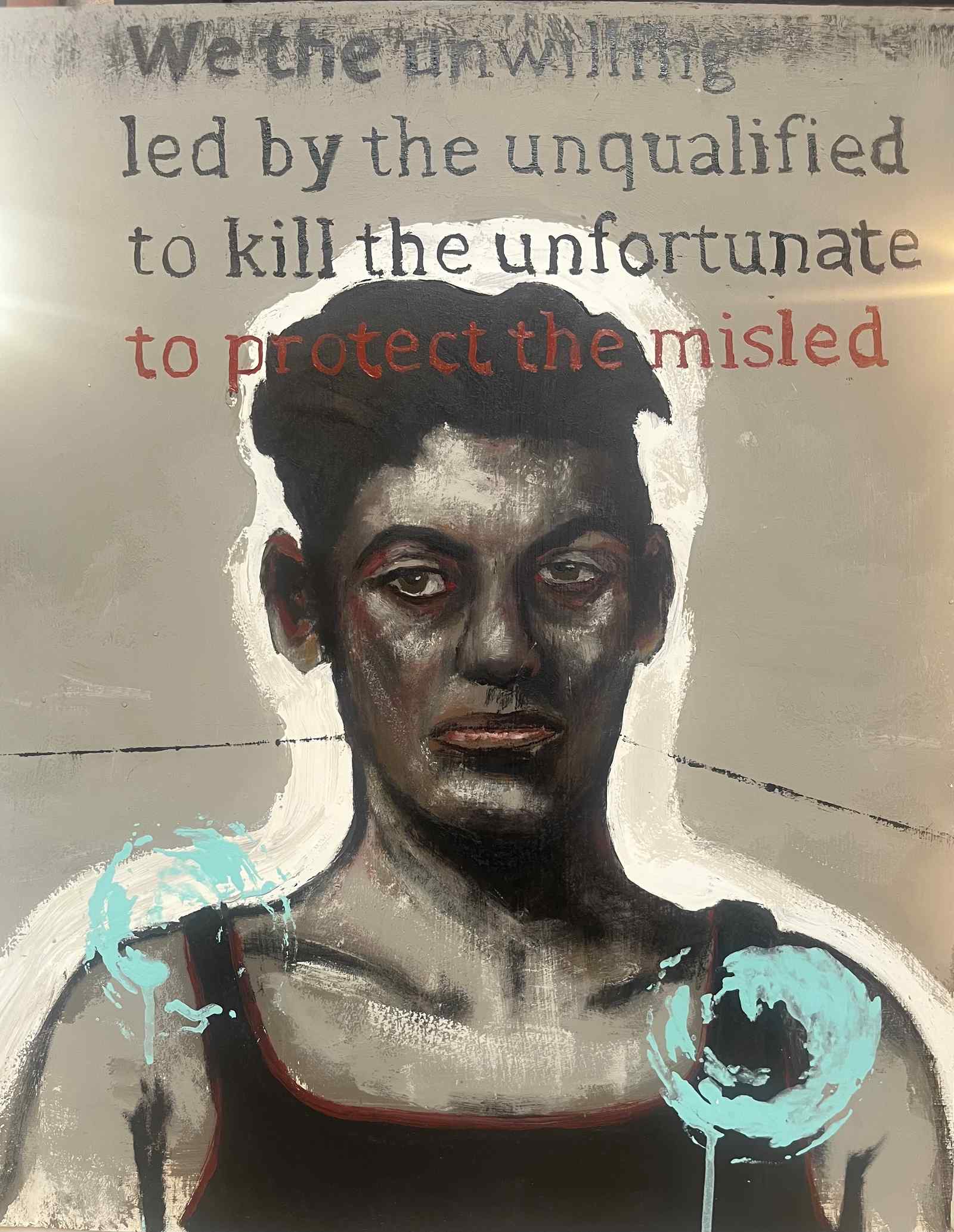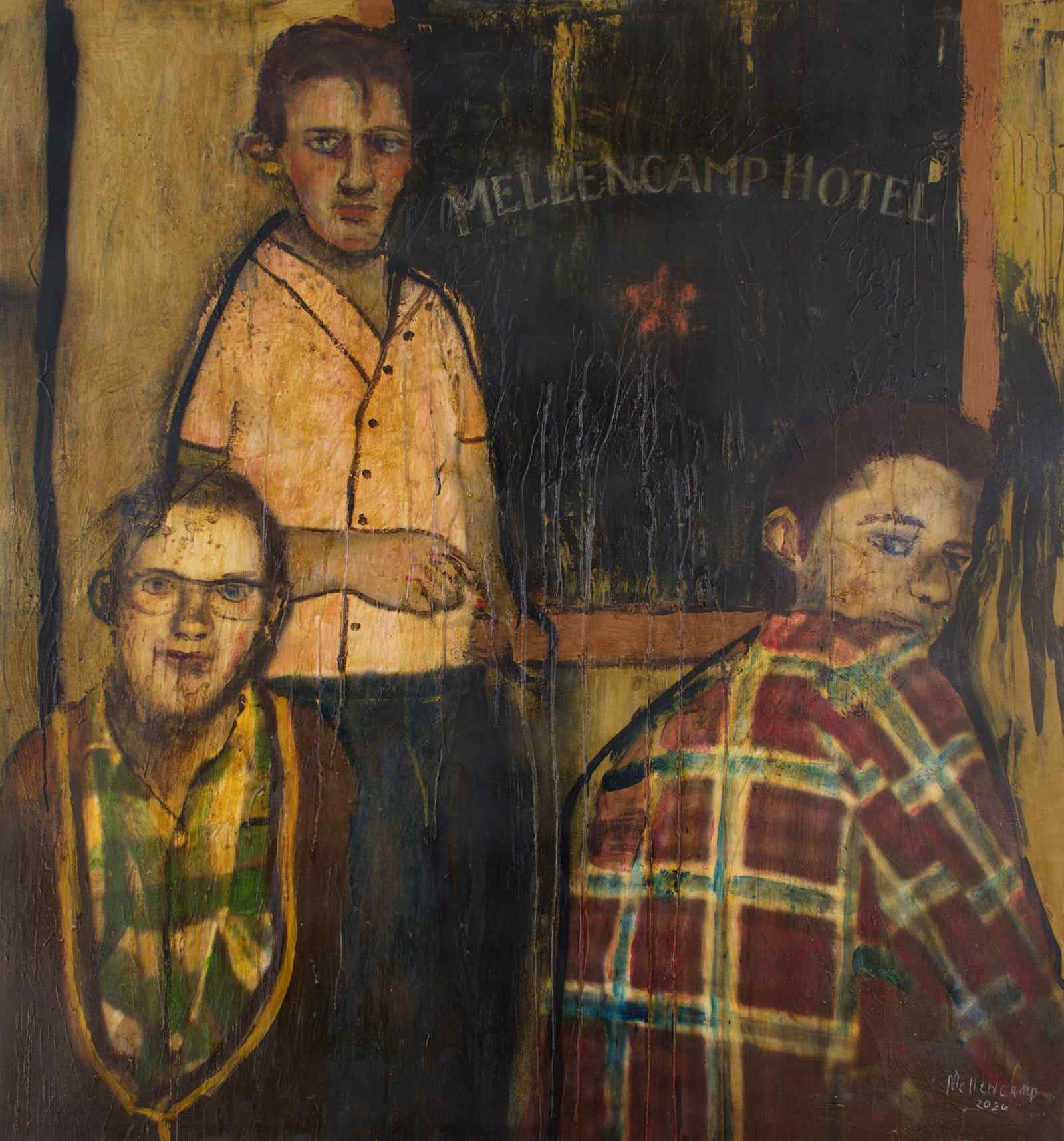 His large-scale oil portraits and mixed-media pieces document America’s heart and soul, revealing unsettling but beautiful truths with a kind of anti-establishment frown, with a rich sense of narrative. Like his music, Mellencamp’s paintings are carefully composed through the structural requirements of harmony, rhythm and order, and is thematically in line with the small-town, earnest voice of the heartland.